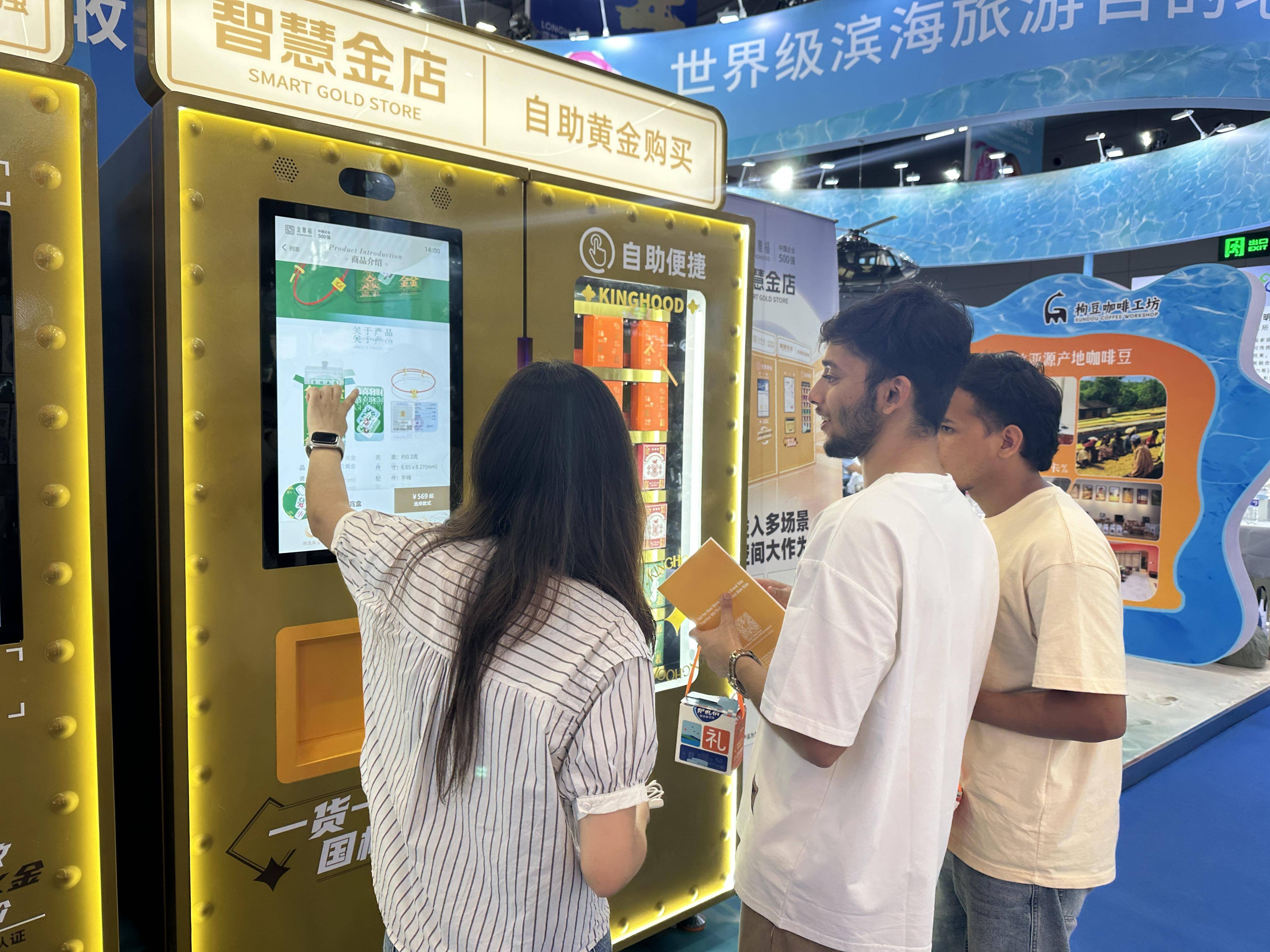在文博会深圳盐田展区,来自金雅福集团的自助黄金购买机吸引了大量关注。该自助黄金购买机首创“黄金盲盒”新形态,联合潮流先锋品牌CAISHENGUANGONG(财神关公)推出“关公盲盒”,并自主研发麻将、金贴、大赢家等主题系列盲盒,将金豆、金条、金饰等多样化产品融入趣味消费场景,满足了顾客对小克重黄金礼品、潮玩文化的即时消费需求。